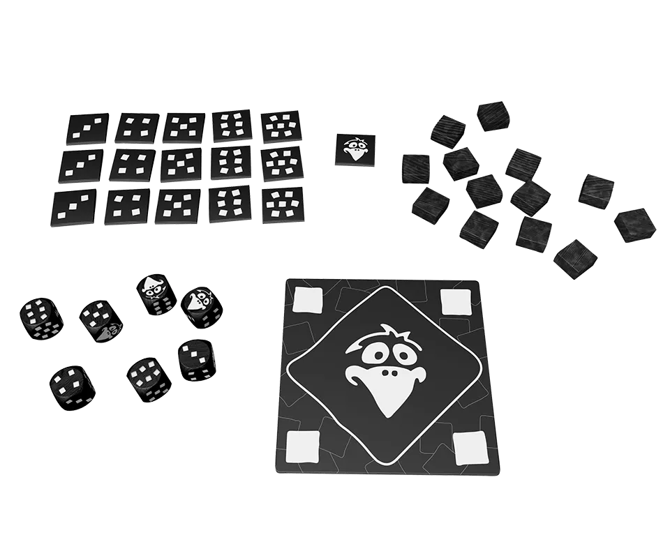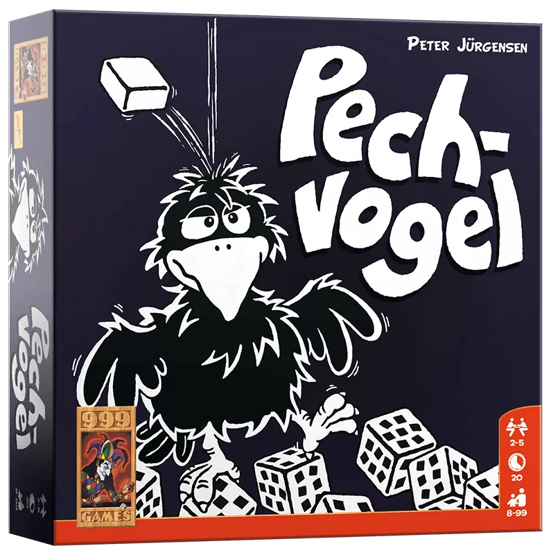 Het gemeenste dobbelspel ooit! Je probeert steeds 4 gelijke resultaten met je dobbelstenen te gooien, maar heb je in totaal 3 raven gegooid, dan is je beurt voorbij. Je krijgt dan echter wel een steen, een zogenaamde frustratie, uit de voorraad. Die kun je later gebruiken om eigen dobbelstenen opnieuw te werpen of een tegenstander te dwingen dat te doen. Lukt het je om ondanks alles 4 dezelfde resultaten te gooien, dan mag je de bijbehorende tegel met punten pakken. Ligt die toevallig bij een andere speler, dan steel je die gewoon! Pechvogel is het ideale dobbelspel voor mensen die graag anderen dwarszitten!