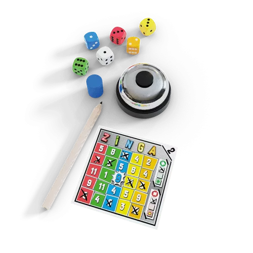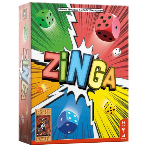 Zinga is een combinatie van een roll en write spel (zoals Qwixx, Clever en Railroad ink) en een reactie spel. Met het Zinga spel is het lachen gieren en brullen geblazen.