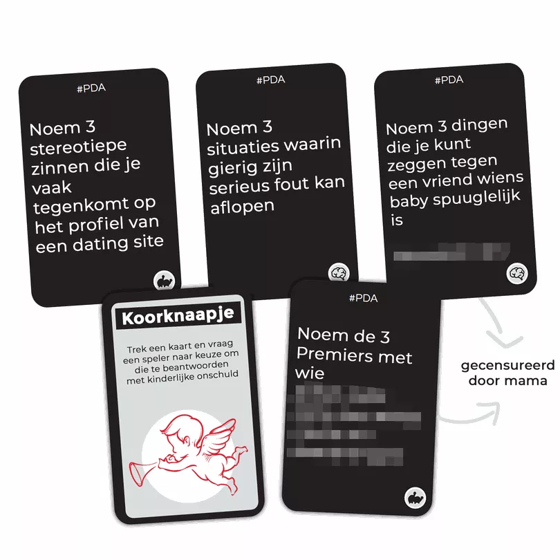 In 8 seconden onthul je de zieke gedachten van je familie, vrienden en van willekeurige vreemden via de gekke vragen op de kaarten. Spontaan & zonder filter.