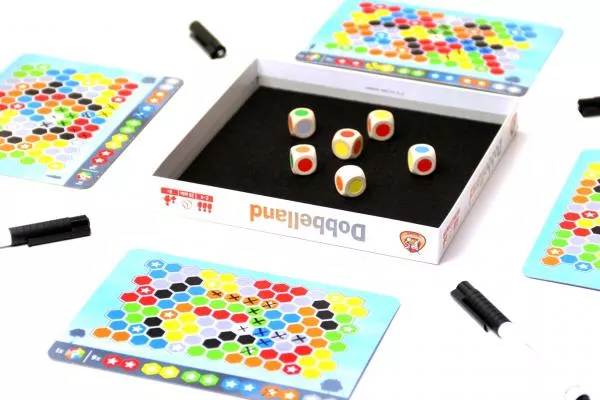 Dobbelland is een racespel met eenvoudige regels. Je hoeft niet te rekenen en geen punten te tellen. Degene die als eerste negen schatvelden heeft bereikt, wint het spel. Maar ook de speler die als eerste alle velden van één kleur weet aan te kruisen mag de overwinning claimen.