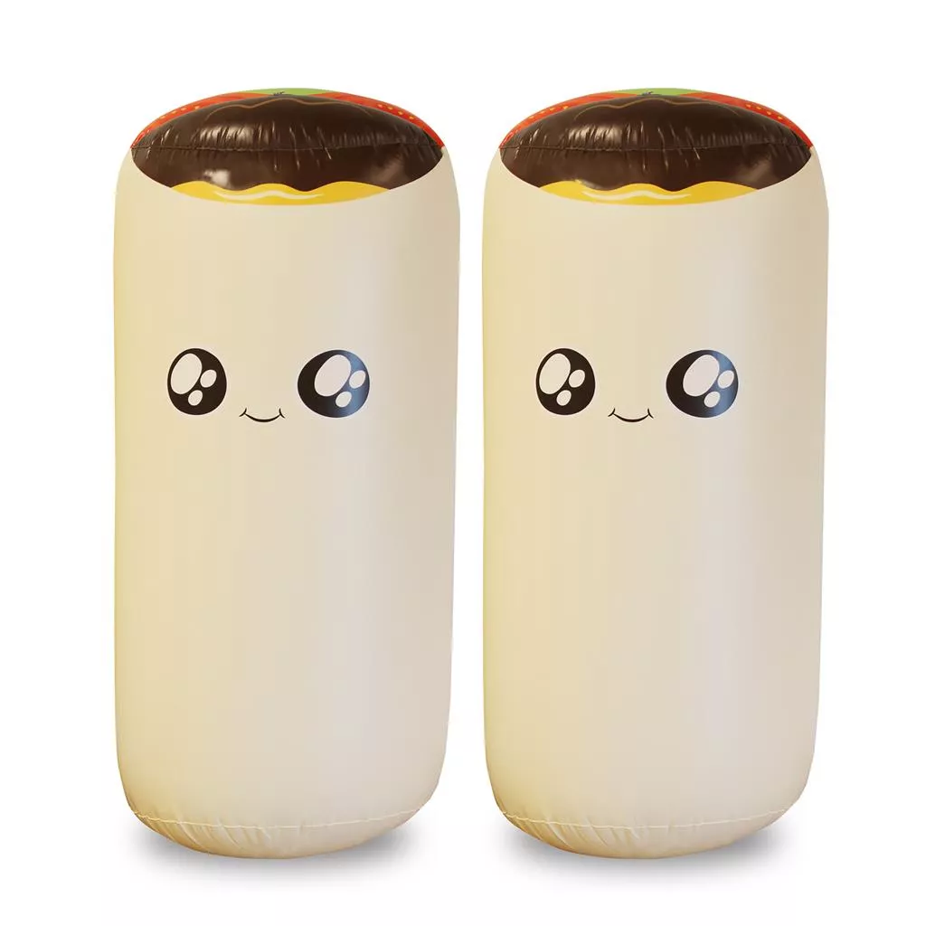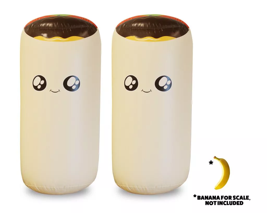 Throw Throw Burrito Extreme Outdoor Edition heeft alle leuke dingen van het originele spel, maar in plaats van schuimrubberen burrito’s naar elkaar te gooien, mag je GIGANTISCHE OPBLAASBARE BURRITO’S naar je vrienden gooien terwijl je speelt met grappige, oversized kaarten. Bevat super duurzame, waterbestendige, extra grote kaarten, instructies, fiches en twee opblaasbare burrito’s van 91 cm.