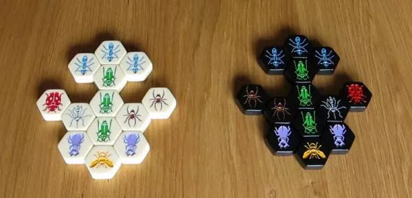 Reisversie van Hive. Inclusief de uitbreidingen: mug (mosquito) en het lieveheersbeestje (Ladybug). Hive is nu een paar jaar in Nederland en het succes is enorm. Niet raar aangezien het spel eenvoudige regels, maar oneindig veel strategische en tactische mogelijkheden heeft. Zelfs na talloze potjes, blijft Hive je verrassen. Hive speel je met 2 spelers en het doel van het spel is om de koninginbij van de tegenstander volledig te omsluiten. Daarbij maakt het niet uit of dat gebeurt met je eigen stukken of die van de tegenstander. De stukken bestaan uit verschillende insecten die allemaal anders bewegen. Zo mag de sprinkhaan bijv. in een rechte lijn naar de eerstvolgende vrije plek springen, de mier onbeperkt lopen en de tor 1 stap lopen of op een ander stuk klimmen. Elke beurt mag je een stuk in het spel plaatsen of een al aanwezig stuk verplaatsen. Een spelletje Hive duurt gemiddeld 30 minuten. De Hive stukken zijn van duurzaam kunststof materiaal gemaakt en zitten in een mooie stoffen zak. Je kunt Hive hierdoor overal mee naar toe nemen: het strand, de kroeg, op vakantie, etc. Hive biedt uitdaging voor iedereen. Een plan is bij Hive niet genoeg, je hebt ook een sterk reactievermogen op de tegenstander nodig. Dat maakt Hive voor iedereen geschikt. Kortom: iedereen zou deze klassieker in wording moeten hebben.