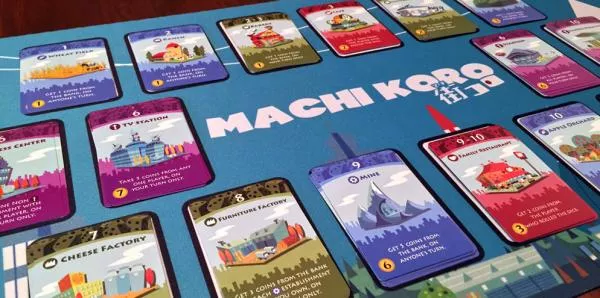 Welkom in de stad van Machi Koro, het Japanse dobbelspel dat de wereld aan het veroveren is. Je bent zojuist verkozen tot burgemeester. Gefeliciteerd! Helaas hebben je burgers een aantal grote eisen: ze willen banen, een pretpark, een paar kaas fabrieken en misschien zelfs wel een radiotoren. Aaai, dat wordt een lastige opdracht omdat je stad momenteel slechts uit een tarweveld, een bakkerij en één dobbelsteen bestaat.Gewapend met een dobbelsteen en je droom, moet je Machi Koro laten uitgroeien tot de grootste stad in de regio. Je moet inkomsten zien te verkrijgen uit ontwikkelingen, openbare werken bouwen en stelen van de schatkist van je buren. Maar zorg ervoor dat ze niet hetzelfde doen bij jou!MACHI KORO is een vlot dobbelspel, waarin de spelers met gebouwkaarten een eigen stad opbouwen. Iedere speler begint het spel met twee startgebouwen en vier bezienswaardigheden. De overige gebouwkaarten worden als open voorraad klaargelegd. In jouw beurt gooi je de dobbelsteen (aanvankelijk 1, later desgewenst 2). Het gegooide getal bepaalt welk gebouw wordt geactiveerd. De kleur van een geactiveerd gebouw bepaalt wanneer en door wie er wordt uitbetaald (geld van de bank ongeacht wie aan de beurt is, geld van de bank in jouw eigen beurt, geld van de actieve speler of geld van alle medespelers). Er zijn dus ook gebouwen die in de beurten van medespelers actief worden. Met jouw geld kun je aan het einde van jouw beurt één nieuw gebouw uit de voorraad kopen of één van jouw bezienswaardigheden activeren. Laatstgenoemden zijn niet alleen goed voor extra voordeeltjes tijdens het spel (waaronder een tweede dobbelsteen wanneer je jouw treinstation activeert). De speler die als eerste zijn vierde bezienswaardigheid activeert wint namelijk het spel.
