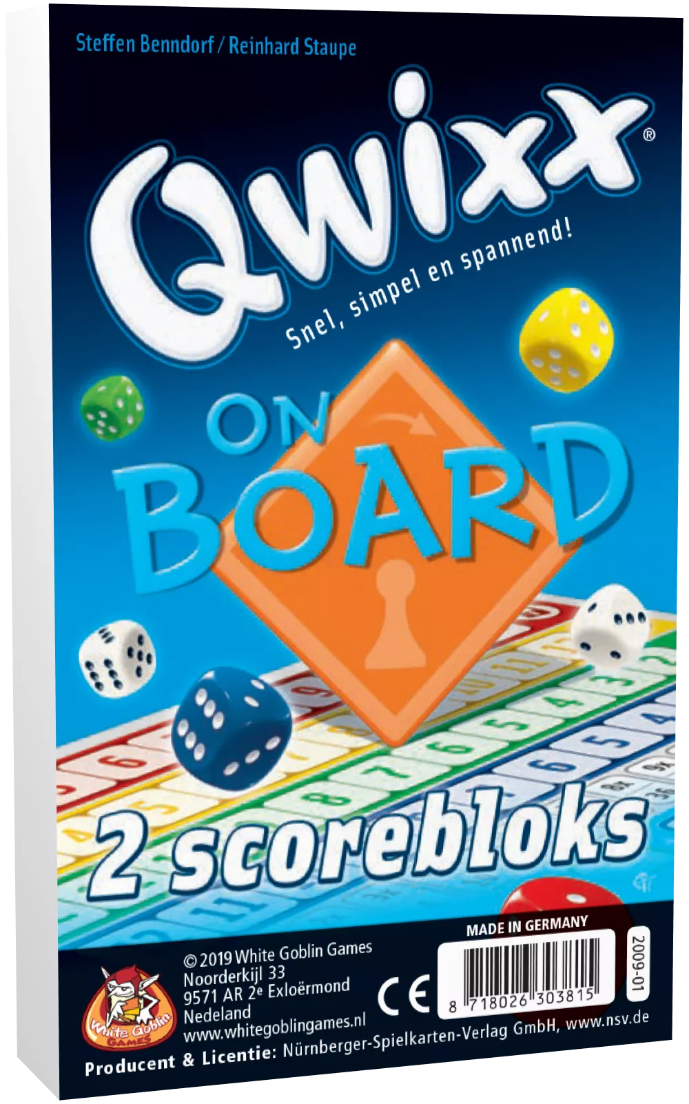 2 extra scorebloks met 80 blaadjes per stuk (160 in totaal) voor het populaire dobbelspel QWIXX ON BOARD.