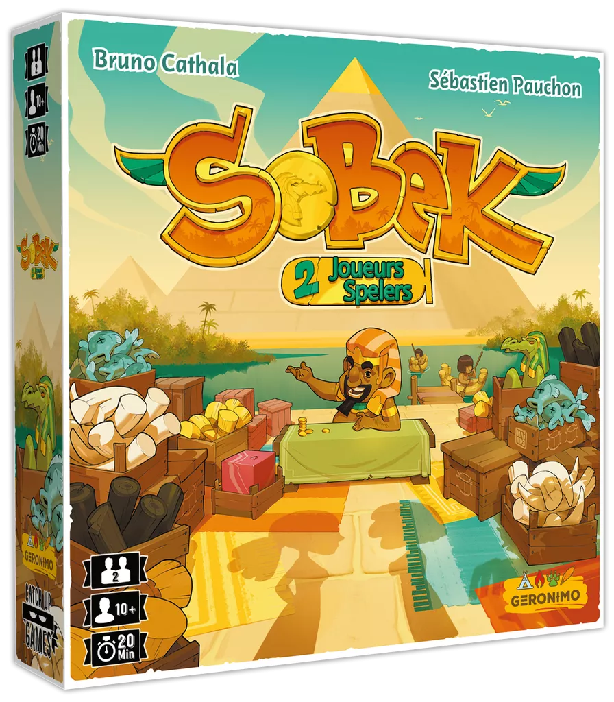 In Sobek voor 2 spelers verzamelen en verkopen twee tegenstanders goederen om de meeste overwinningspunten te verdienen. Wanneer een speler een Goed neemt, kiest hij er een in lijn met de Ankh-pion en voegt deze aan zijn hand toe. Vervolgens plaatst hij de Ankh-pion in de rij die wordt aangegeven door de tegel die hij zojuist heeft genomen, en bepaalt zo de keuzes van zijn tegenstander.